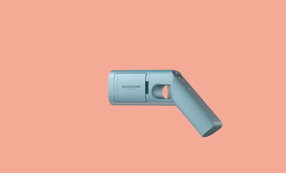 This is a gun-shaped mobile phone controller. Through the built-in camera of the product or the camera of a mobile phone, reality and virtual can be mixed. So, it is possible to use various contents and games of augmented reality. Since the mobile phone can be mounted horizontally or vertically, the product can be used according to the content situation. This device has several joints, so it is possible to freely adjust the angle. When designing this product, the most important thing I thought was to create a minimalist and intuitive form. This was a difficult mission. It is structurally too complex, and ergonomics have to be considered. To maximize usability and to find a minimal form-starts with finding a lot of unnecessary elements of form and structure. And through these works, the essence of the product is revealed as effectively as possible. When designing the product, we considered the application of low specific gravity plastic-so that users can feel as light as possible.